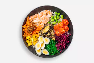 Poke bowl with shrimps and rice