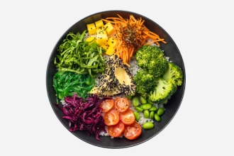 Poke bowl with salmon and rice