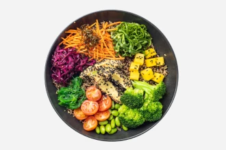 Poke bowl with salmon and quinoa